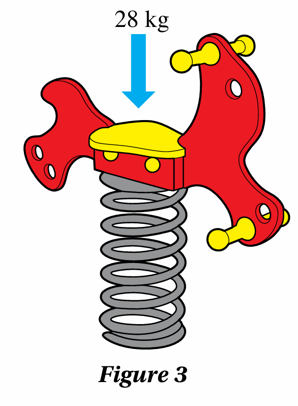 Figure 3 shows a children’s playground equipment. The spring in the equipment experiences a compression of 5.0 cm when a child of mass 28 kg sits on it. What is the spring constant of the spring in N m–1?